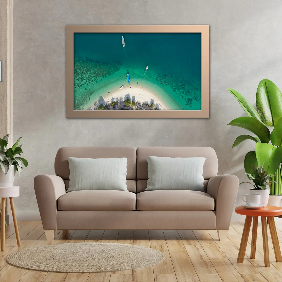 Beautiful Clear Water Island is a high-quality poster print ready to adorn any wall. It's printed on premium photo paper for crisp, vivid color and features a stunning aerial view of a bright sunny day on a white sand beach. Enjoy a stunning view every day!