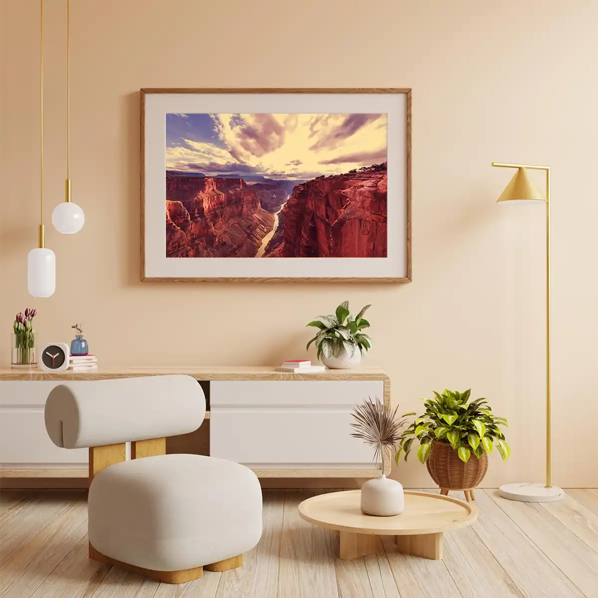 Behold the Grand Canyon's majestic splendor with this timeless wall art poster print. Ready to use, printed in a high-quality photo paper that ensures crisp, vivid colors that bring the views of the canyon to life. Enjoy the timeless beauty of the Grand Canyon with this luxurious poster.